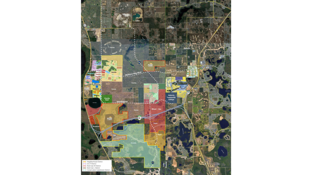 The Panther Run community will be the most significant project within Wellness Way, covering an expansive area from U.S. Highway 27 to the Orange County line. This ambitious plan includes approximately 3,000 homes and up to 1 million square feet of commercial space.