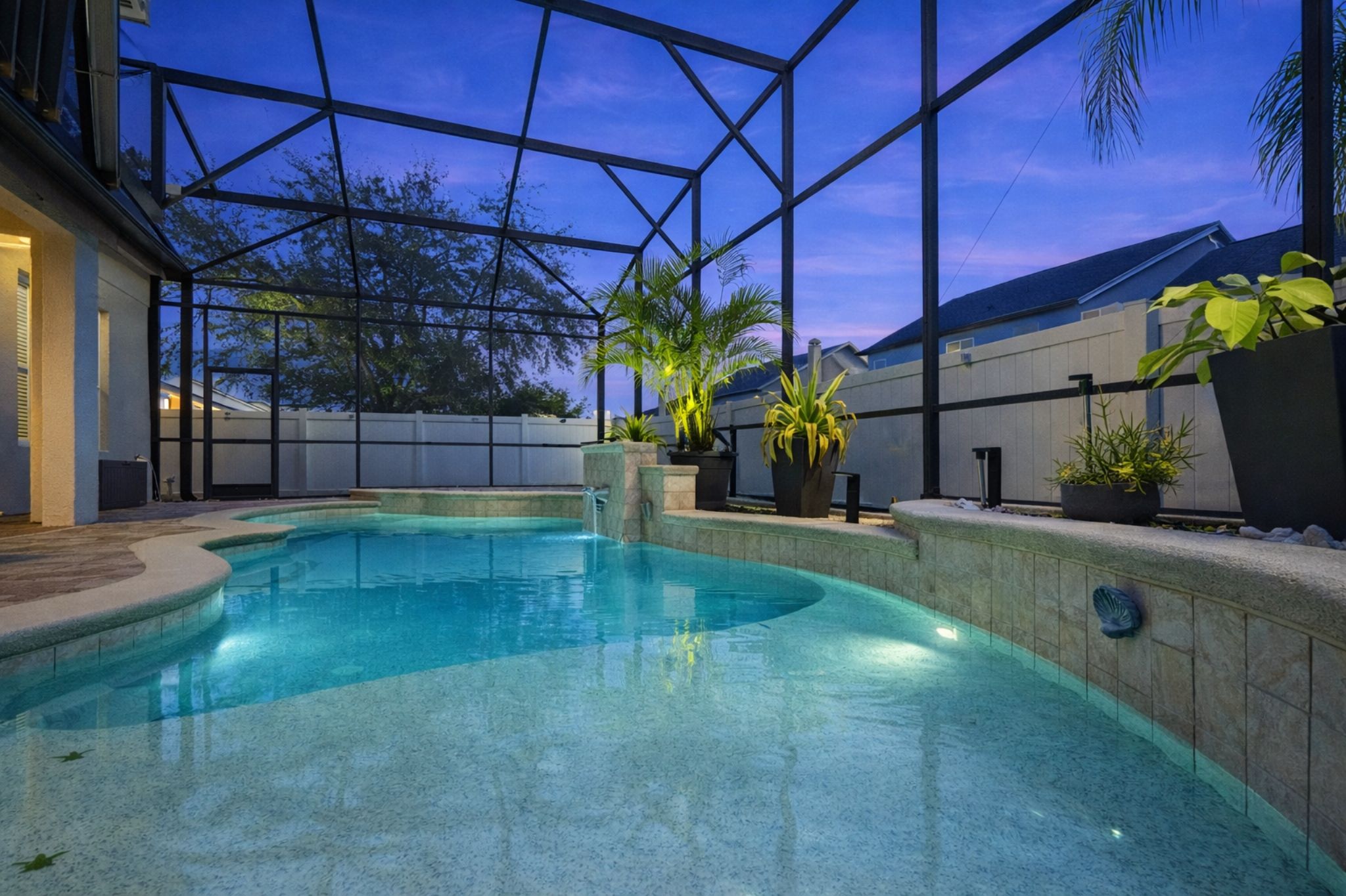 If you’ve been waiting for a move-up home in Avalon Park that feels truly “done,” this is the one. 14750 Sweet Acacia Drive stands out as a rare, exceptionally well-maintained resale—clean, refined, and upgraded in the places that matter most. The curb appeal starts with a welcoming front porch and swing, plus an upgraded front door with a glass insert that sets the tone the moment you arrive. Inside, the layout offers flexible living with a front office (or formal living/dining option) featuring two built-in granite desks, custom millwork, and beautiful natural light. The main level is finished with 16-inch ceramic tile, upgraded baseboards, and bright open spaces with high ceilings and an architectural staircase with custom glass inlay detail. The completely remodeled kitchen is the centerpiece: quartz countertops with striking gold veining, designer backsplash, 42-inch upper cabinetry with crown molding, and a full LG stainless appliance package—built for both everyday living and entertaining. Upstairs, the secondary bath has updated finishes and a remodeled vanity, while the primary suite is equally dialed-in with a spa-style bath featuring dual sinks, abundant storage, and a remodeled shower with rain head and seamless glass. Out back, the lifestyle hits another level. Double sliders open to a covered lanai with fresh pavers and a motorized awning—perfect for extending shaded outdoor living. The pool has been fully redone with a beach entry, oversized step/play area, a raised beam with fountain feature, and solar heating, creating a resort-style setting that feels like a vacation at home. Major systems add peace of mind with an upgraded roof and a Trane upstairs A/C (per seller), plus a tankless/on-demand water heater. Even the garage reflects the same standard with an insulated door, overhead storage, and a Wi-Fi enabled MyQ side-mount opener. Avalon Park is prized for its community-oriented design with a true downtown core, frequent events, and an extensive trail network connecting parks, schools, and local destinations—one of the reasons move-up buyers consistently target this neighborhood for long-term lifestyle and desirability. Located just minutes from Avalon Elementary School, Avalon Middle School, and Timber Creek High School, and close to shopping, dining, and daily conveniences. Enjoy easy access to Waterford Lakes Town Center, University of Central Florida, Downtown Orlando, and Lake Nona, with quick routes via State Road 408 and State Road 528. Luxury, location, and lifestyle — all in one.