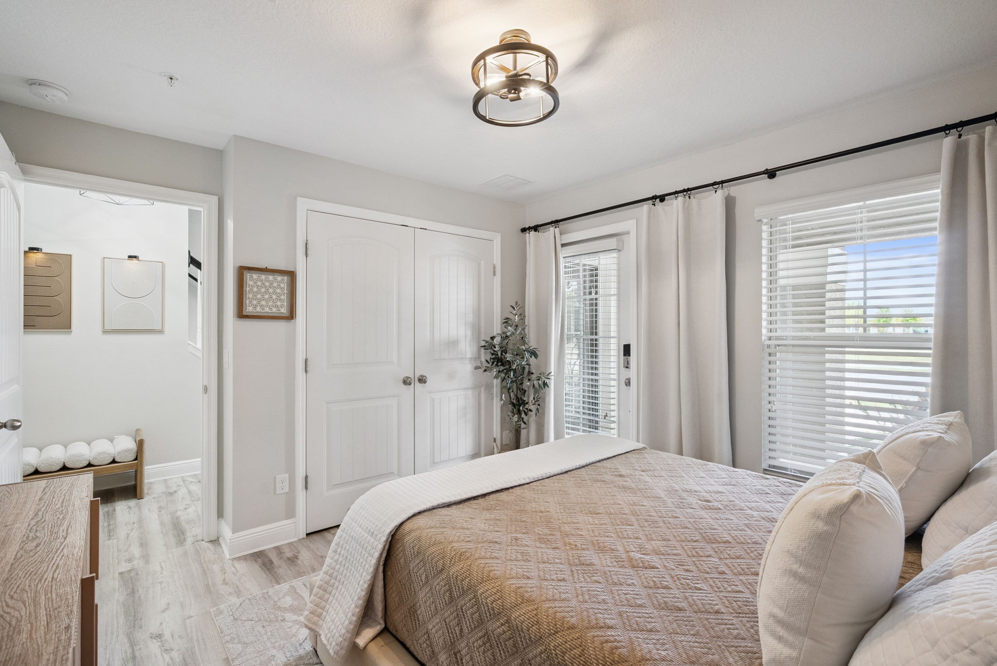 One or more photo(s) has been virtually staged. Refined, extensively upgraded, and exceptionally maintained, this designer-inspired townhome stands out as one of the most refined and thoughtfully improved opportunities in the area. Offering peaceful water views, a highly functional multi-level layout, and a quiet setting that feels tucked away from the pace of the city, this home delivers a rare blend of style, flexibility, and convenience just minutes from Lake Nona. From the moment you arrive, the quality of care and pride of ownership are immediately evident. The first floor features one of the home’s most valuable and versatile design elements: a private bedroom and full bath with its own separate entry, creating an ideal setup for guests, multigenerational living, a private office, or an extended-stay suite. It is a floor plan feature that adds meaningful flexibility and sets this property apart. The second-floor living space is where the home truly opens up, with a bright and airy layout designed for both daily living and elevated entertaining. Large windows frame beautiful water views and bring in abundant natural light, while the open-concept design connects the living, dining, and kitchen areas in a way that feels both spacious and intentional. The kitchen has been elevated with finishes that go beyond what is typically found in comparable homes, including staggered upper cabinetry, granite countertops, stainless steel appliances, generous storage, and a large center island that anchors the space beautifully. Throughout the home, the owner’s investment in cosmetic improvements is unmistakable. With tens of thousands of dollars in updates, the interiors have the feel of a polished model home or HGTV-style showpiece. The finishes are clean, current, and cohesive, and every space has been thoughtfully curated to enhance both style and function. Wide-plank wood-look flooring, carefully selected design details, and an overall sense of consistency give the home a refined, move-in-ready presentation. The primary suite offers a true retreat, complete with tray ceilings, a spacious layout, and a beautifully appointed bath featuring dual vanities, a soaking tub, and a seamless glass shower that adds a more custom, upscale feel. Additional rooms provide flexibility for a variety of uses, including one bedroom that has been fully transformed into an impressive themed home theater room, creating a level of character and lifestyle appeal rarely seen in homes of this age and price point. Equally compelling is the setting. This home enjoys a quiet, peaceful atmosphere with water views and a sense of separation from the hustle, while still keeping you closely connected to everything that makes this location so desirable. Positioned just outside the busiest pace of Narcoossee Road, you can enjoy easy access to Lake Nona’s dining, shopping, and everyday conveniences without feeling caught in the middle of it. Located near Lake Nona’s Medical City, Orlando International Airport, and a growing mix of recreation and lifestyle amenities, with easy access to SR 417 and SR 528.