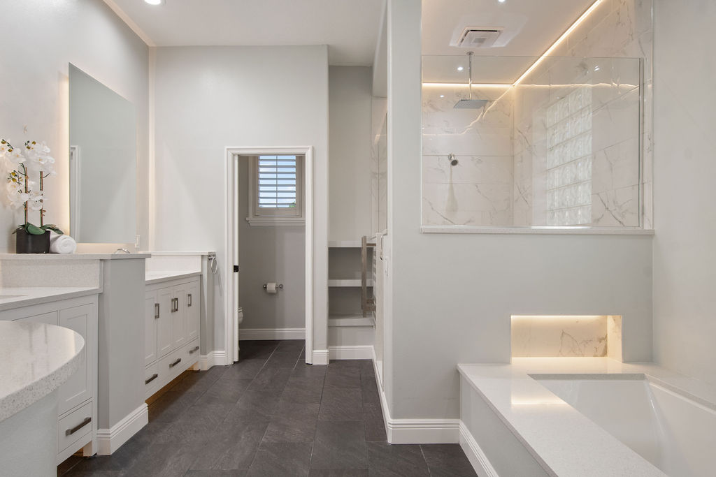 The systems match the finishes. Whole-home RainSoft suite with water softener, reverse osmosis, Clean Start laundry, and AirMaster Ultra air purification. GENERAC PWRCell battery backup. XPEL Dark Neutral window tinting blocking 99% of UV rays and rejecting 70% of solar energy. Oversized 3-car garage with 10-foot ceilings and EV ready.